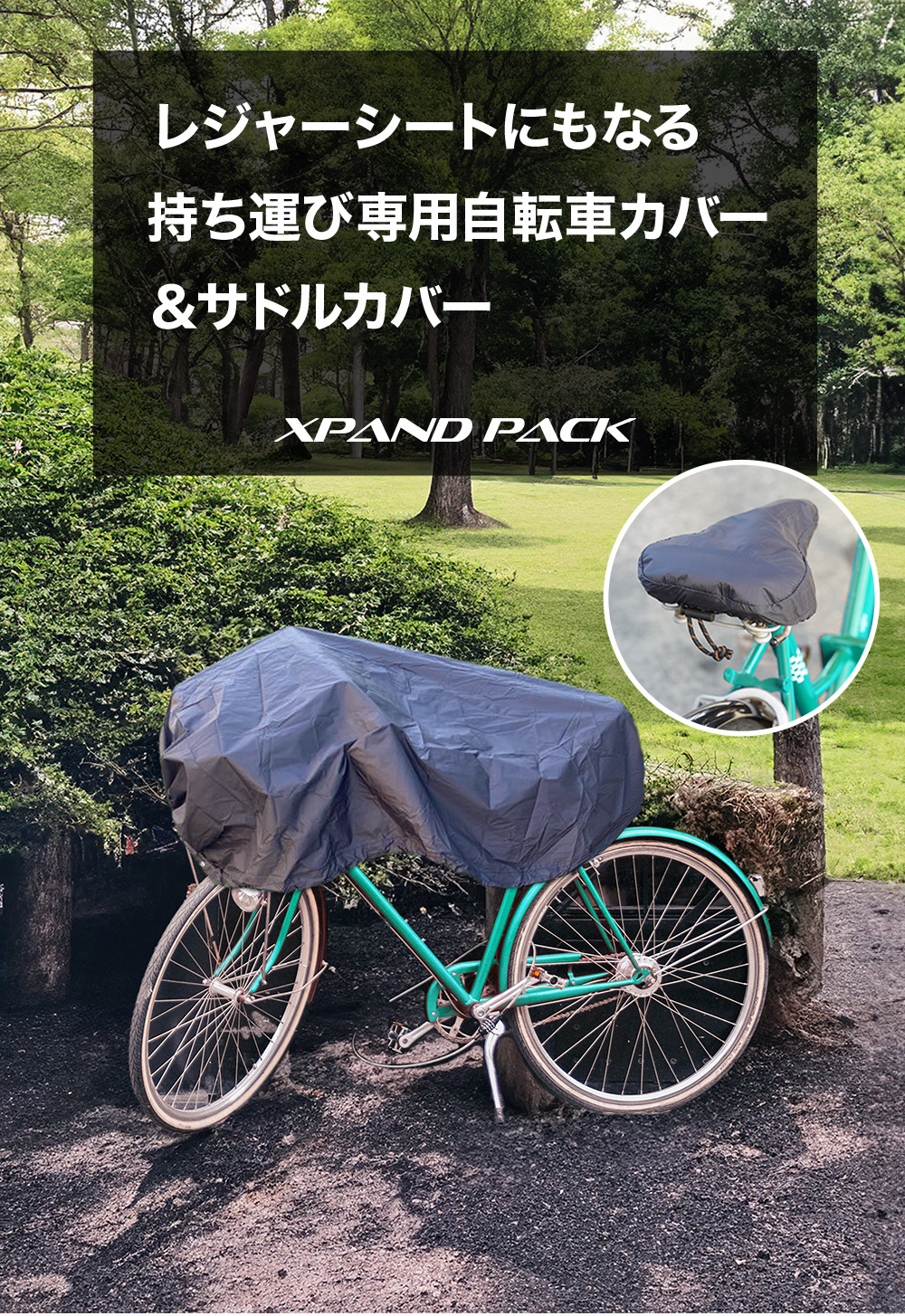 XPANDPACKの自転車カバーはカゴからサドルまでの必要な部分を覆うことができるように設計されています。